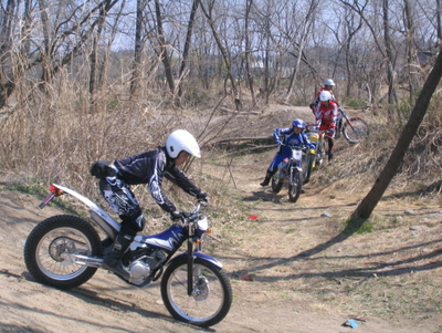 | トライアルはオンロードを走るオートバイと違って練習をしないと乗れません。フロントアップ、極低速でのターン、急坂、ステアケース越えなど、やったことのない人には無理かと思われるようなトライアルライディングが練習でできるようになります。 他のオフロードバイクのライディングにも有効です。なんといってもいいのは全身を使って動くのでとてもよい運動になります。 |